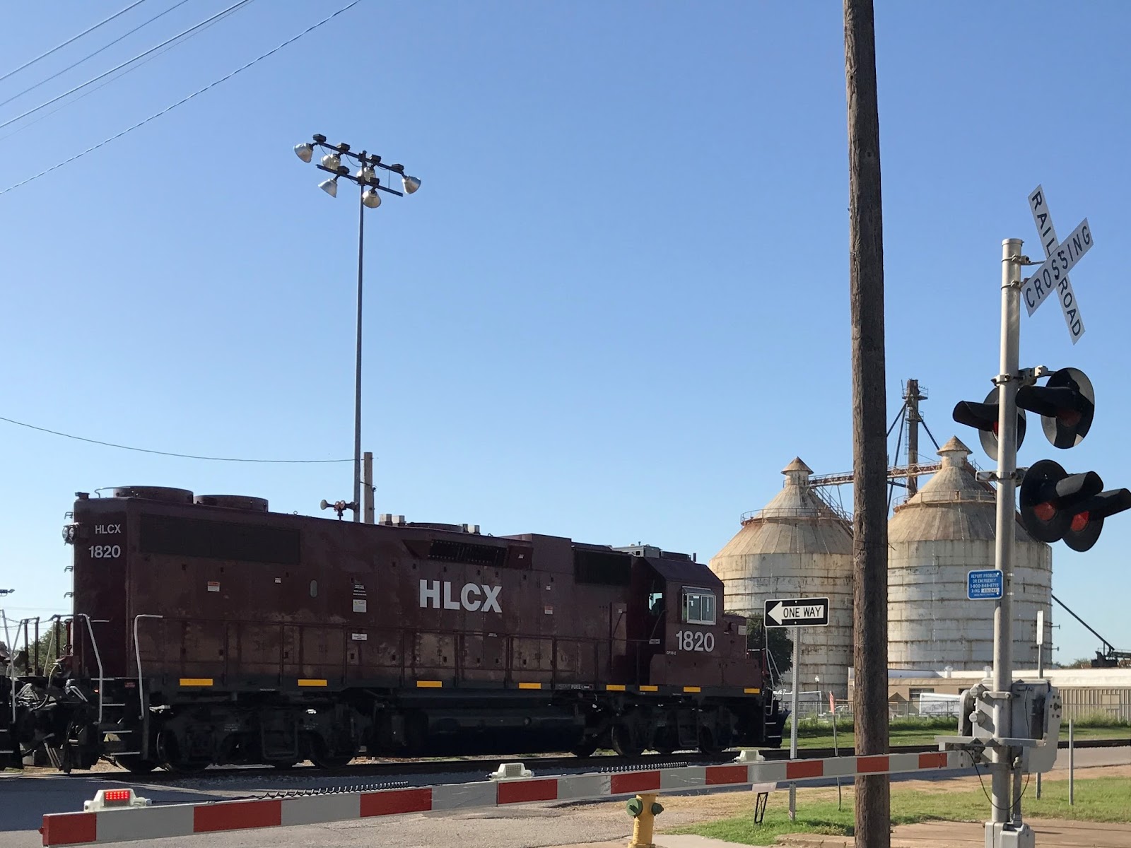 | Trains run through town near Silos |