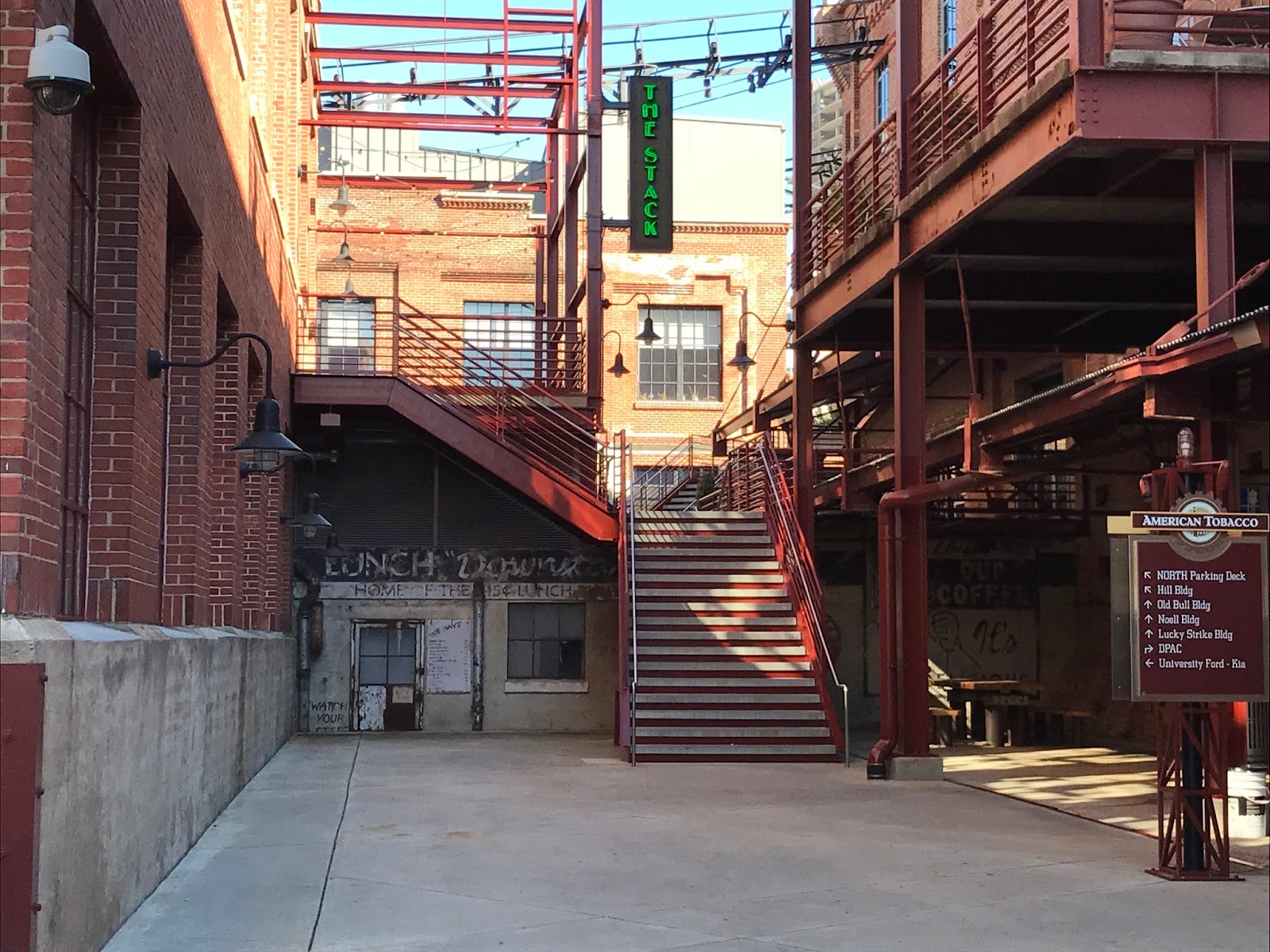 The American Tobacco Campus is a collection of large brick buildings that were brought back to life after the American Tobacco Company (and other tobacco companies) vacated the factories and warehouses in the late 1980’s.