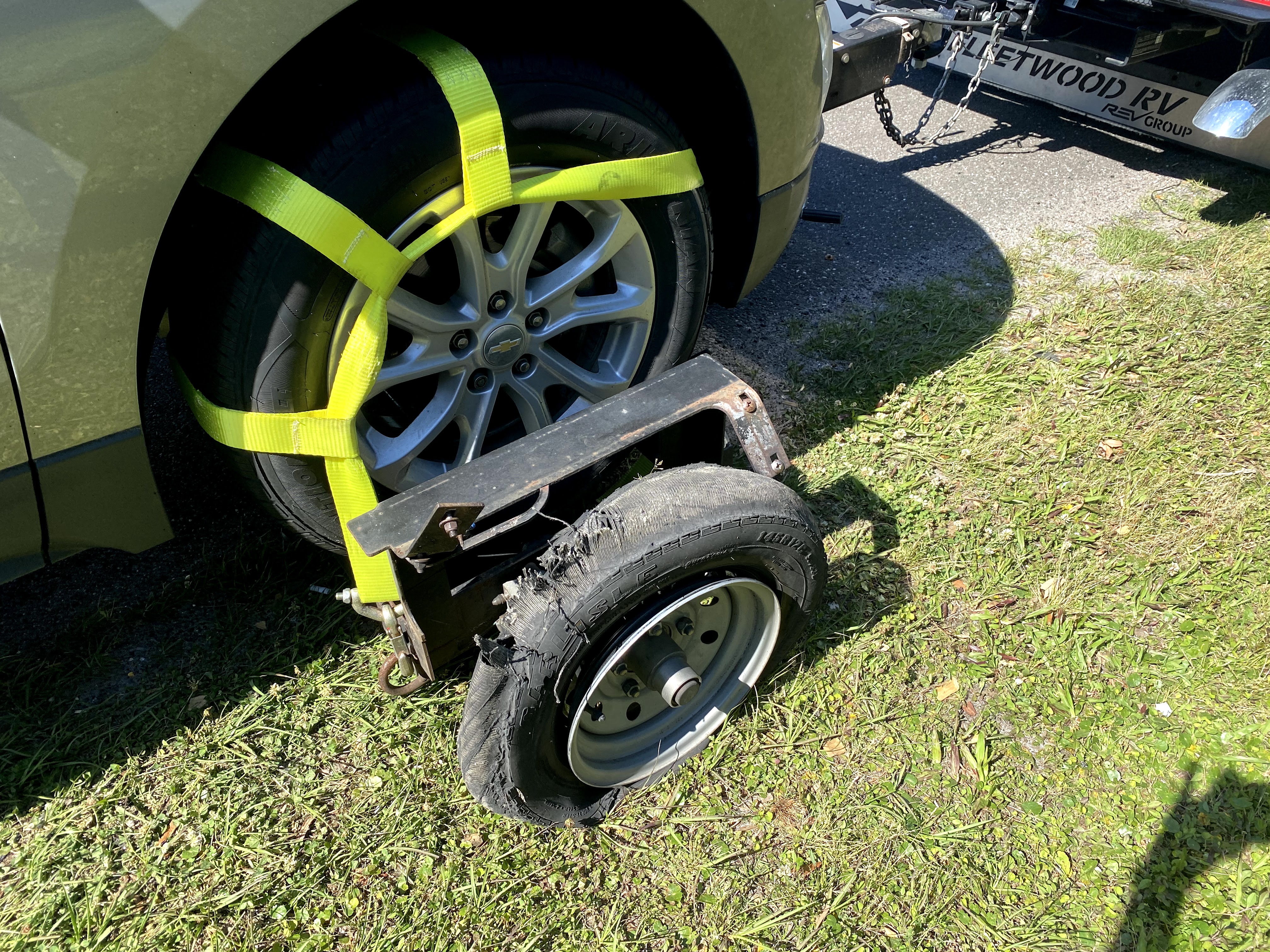 Likely a lesson learned from this experience is the tires on the dolly may look fine on the outside, but they take such a beating as we travel; we will be replacing them more often.