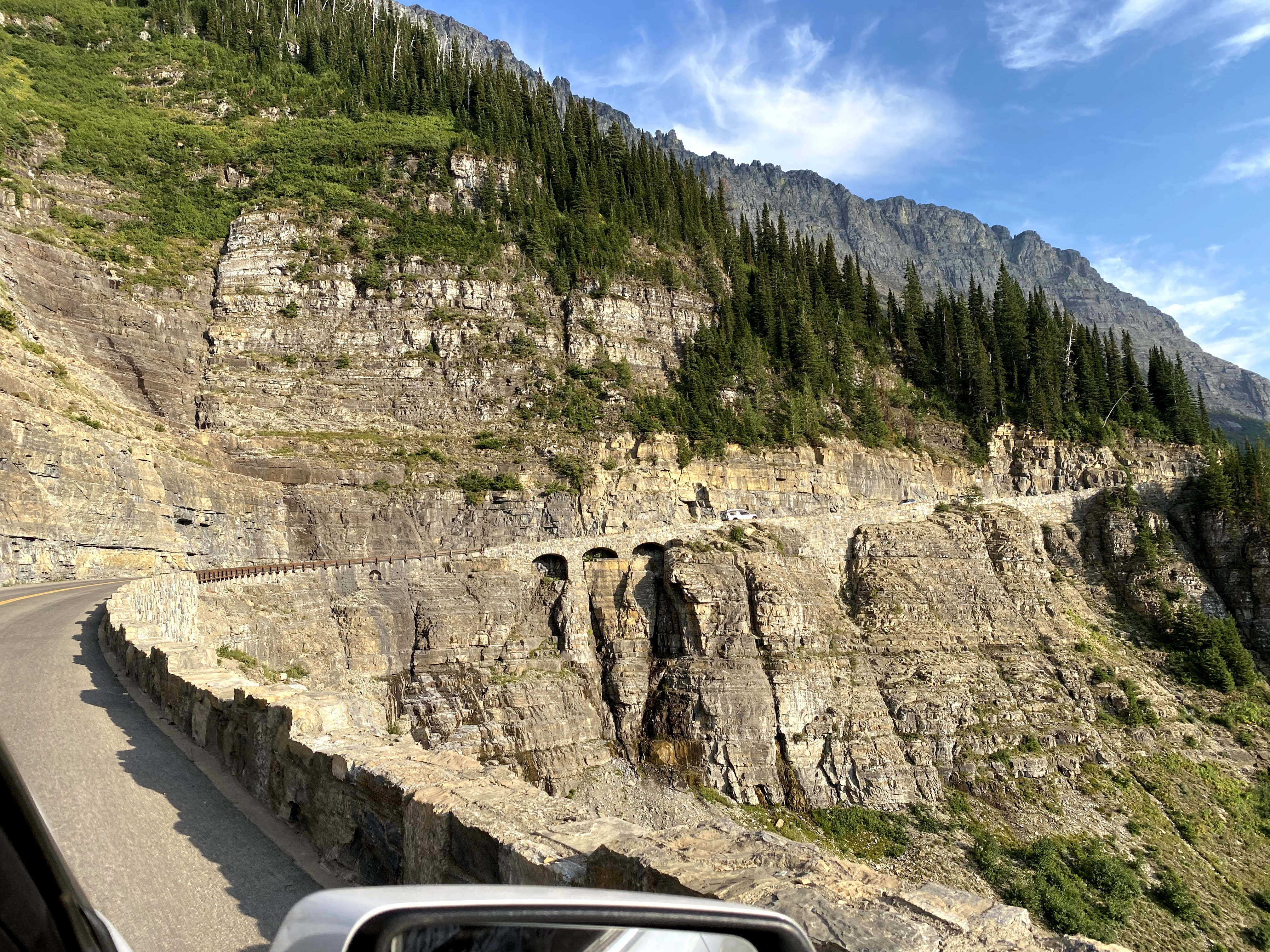 Going To The Sun Road (GTTSR): Labeled a “monumental engineering accomplishment”; the 50+ mile road is the only roadway that connects the east and west sides of the park. The road was started in the 1920’s and dedicated in 1933 with many improvements since. It opens in late June or early July and closes in October, depending on weather.