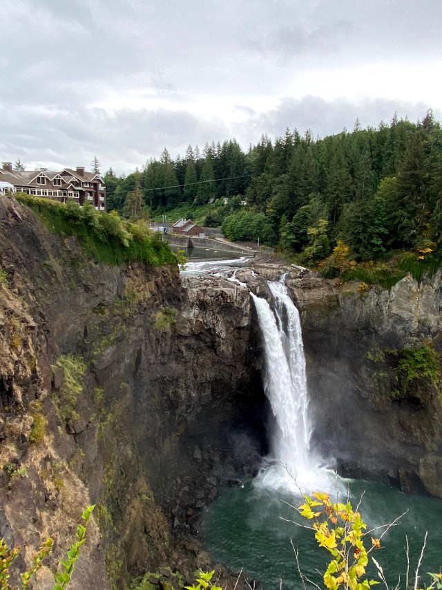 Snoqualmie Falls is one of Washington’s most popular scenic attractions. Most of the Snoqualmie River is diverted into power plants, but there is still a good amount of water coming over the 268′ falls. There are viewpoints both on the upper and lower level.