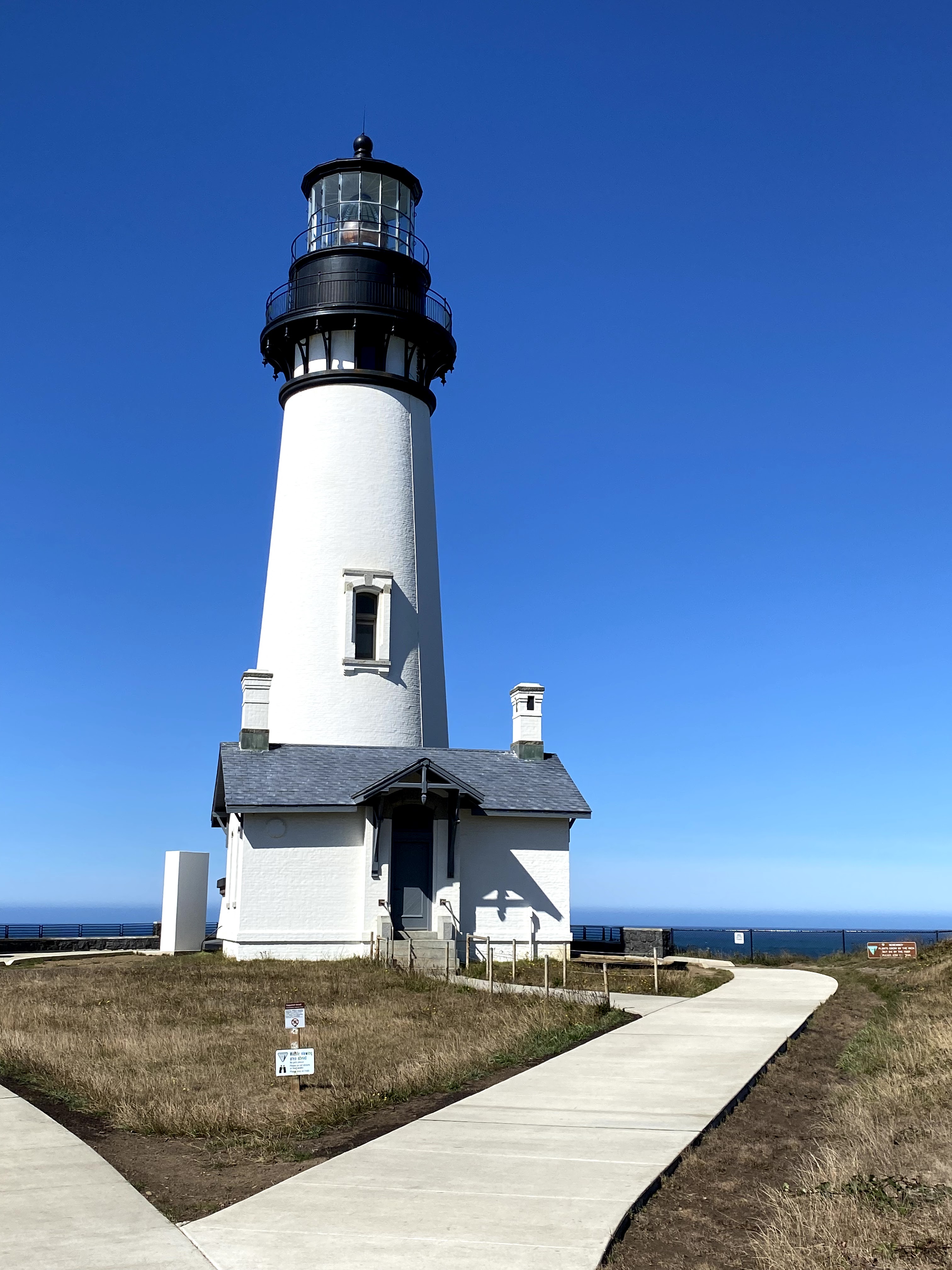 The Yaquina Head Lighthouse near Newport was quite a site. Completed in 1873 it stands 93′ tall (tallest on the Oregon coast) with the light 161′ above sea level. With numerous updates and renovations over the years, it has been in continuous use currently operated by the Coast Guard and US Bureau of Land Management. Normally it is open for tours, it remains closed due to COVID restrictions.