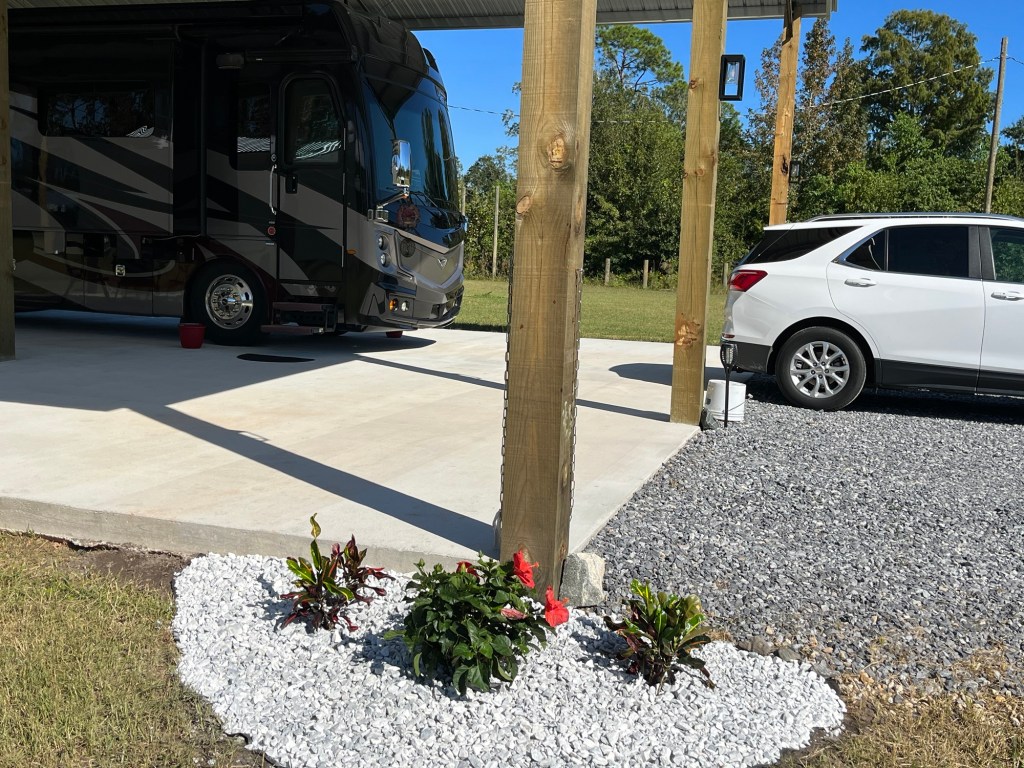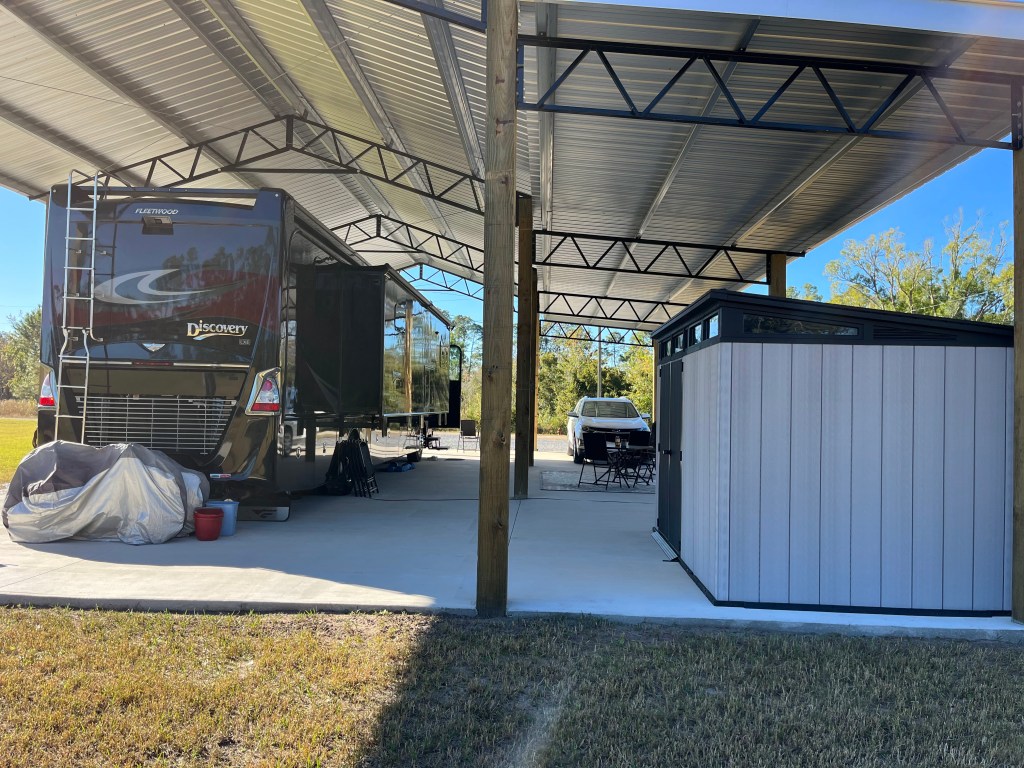 Year Seven Summary: We left Michigan in late August-2023 and traveled to Maryland and North Carolina for time with family. We arrived at our Florida property in late September and got busy installing lighting, a shed, and a little landscaping. The RV port works great and offers protection from the elements.