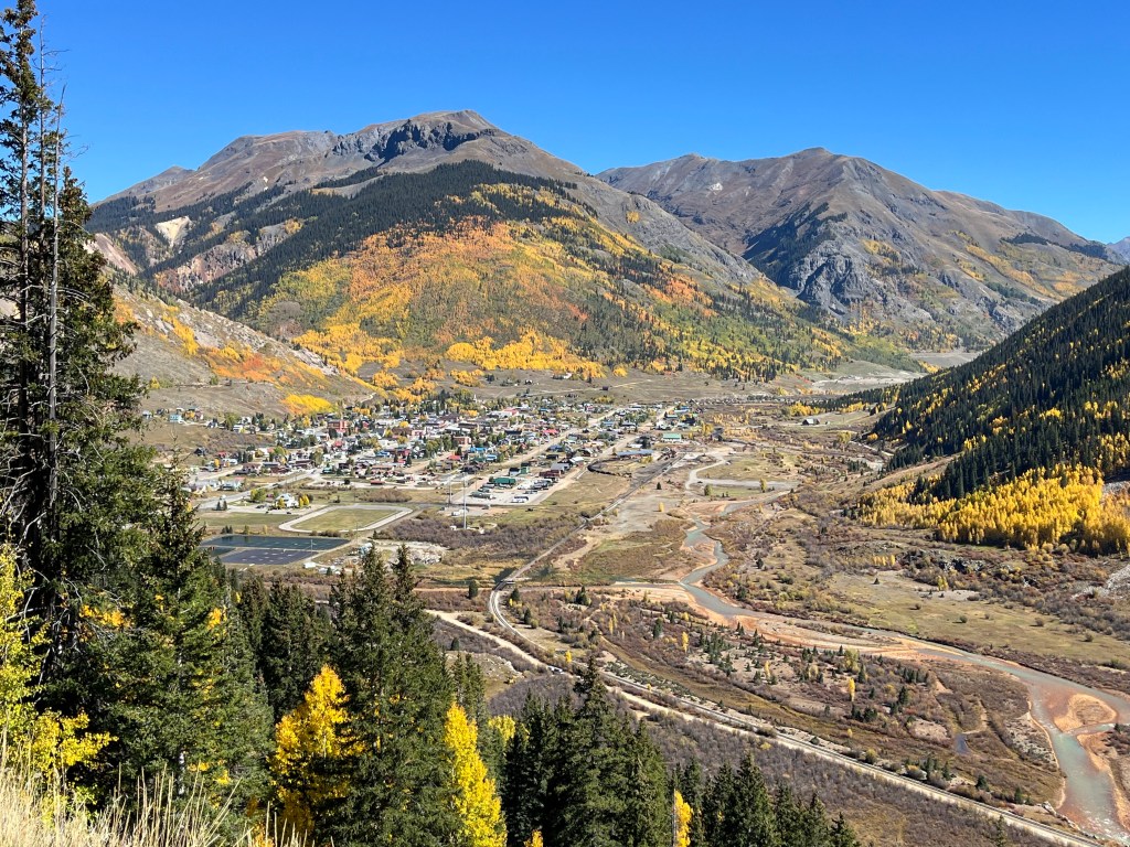 From these towns we drove north on several scenic bi-ways to take in the Fall Aspen show. We visited the mountain towns of Telluride, Pagosa Springs, Creede and Lake City. The best Fall color was along Highway 550 north of Durango to Silverton and Ouray, known as the “Million Dollar Highway”.