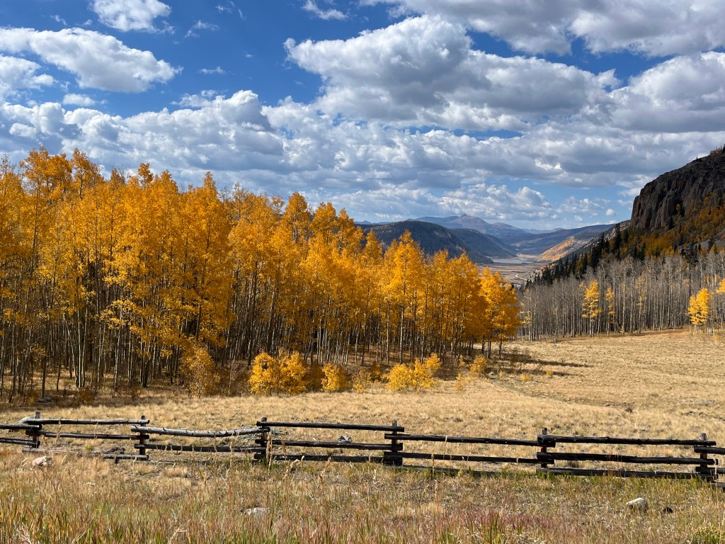 The Aspens were in their Fall golden glory in the San Juan Mountains in southern Colorado in late September. After leaving the Moab UT area, we traveled southeast into Colorado with stays in Delores, Durango, and South Fork Colorado.