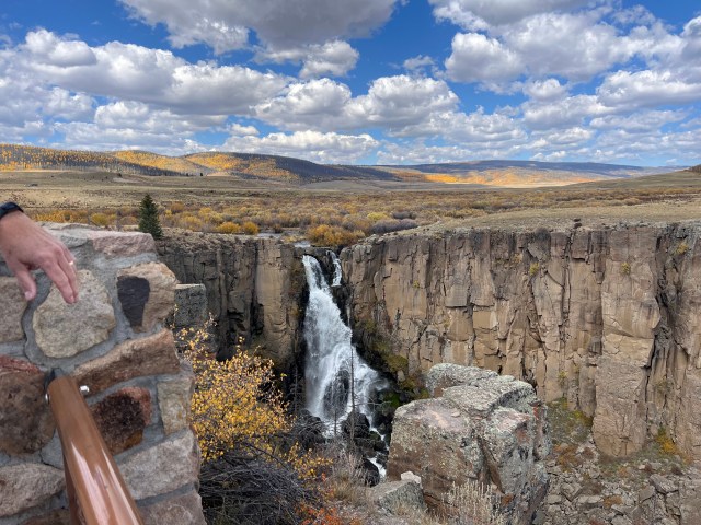 North of South Fork and CO Hwy 160, we drove the Silver Thread Scenic Byway between Creede and Lake City stopping at the North Clear Creek Falls. North Clear Creek is part of the Rio Grand River system that originates in the San Juan Mountains. The waterfall drops 100 feet from the plateau to the canyon below.