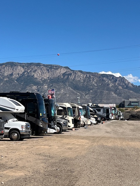 This is a 10 day event that takes place at Balloon Fiesta Park located on the north edge of Albuquerque just west of I-25. There is a huge launch field surrounded by extensive grounds for vehicle parking including temporary RV camping lots.